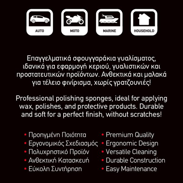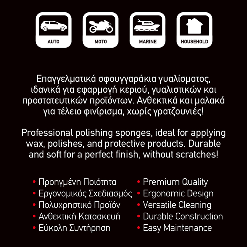 Σχεδιασμένα για ομοιόμορφη εφαρμογή προϊόντων όπως κερί, sealant, dressing κ.α.