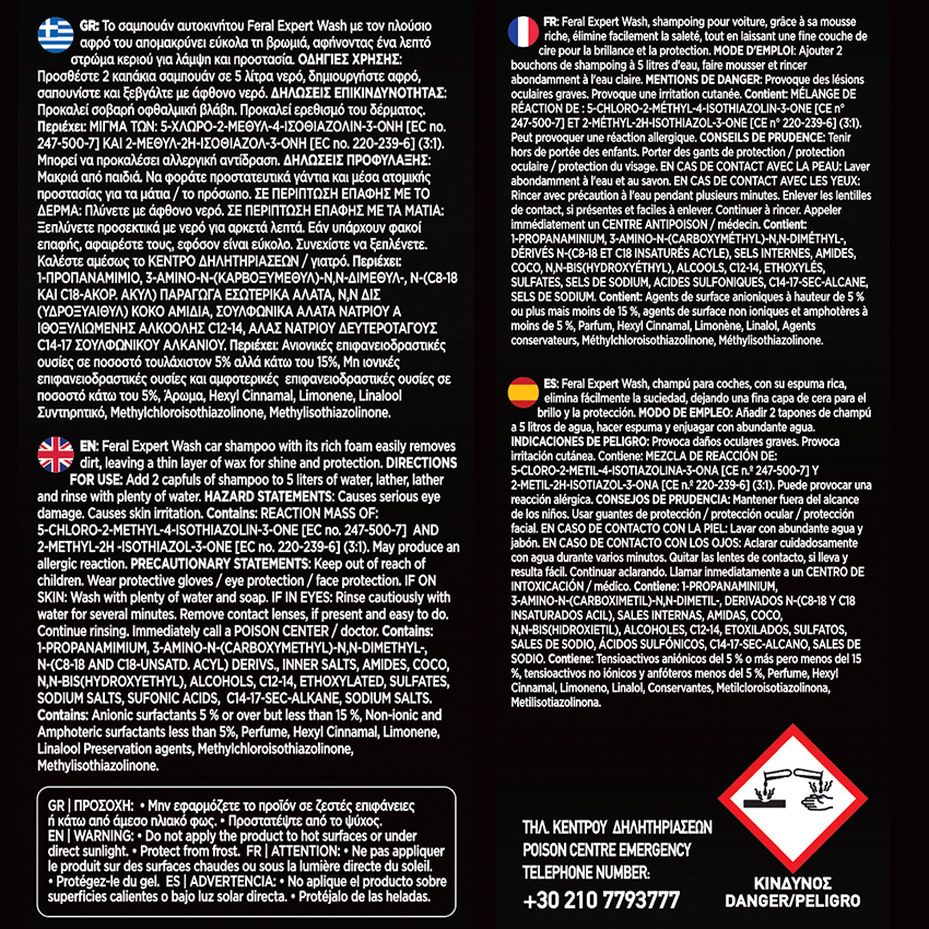 Feral Detailing Pro Expert Wash Car shampoo with Citrus Spark scent, offering deep yet gentle cleaning that effectively removes dirt and grime without stripping the paint protection. It creates a rich foam that facilitates washing and leaves the car surface shiny and protected, enhancing its natural gloss.