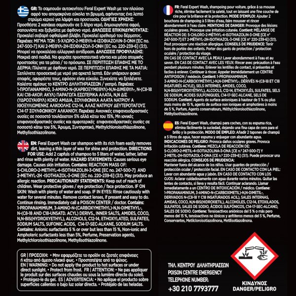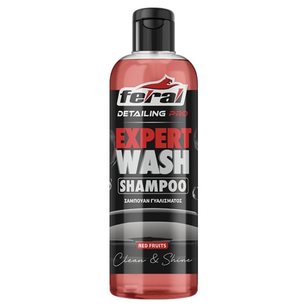 Feral Detailing Pro Expert Wash Car shampoo with Red Fruits scent, offering deep yet gentle cleaning that effectively removes dirt and grime without stripping the paint protection. It creates a rich foam that facilitates washing and leaves the car surface shiny and protected, enhancing its natural gloss.