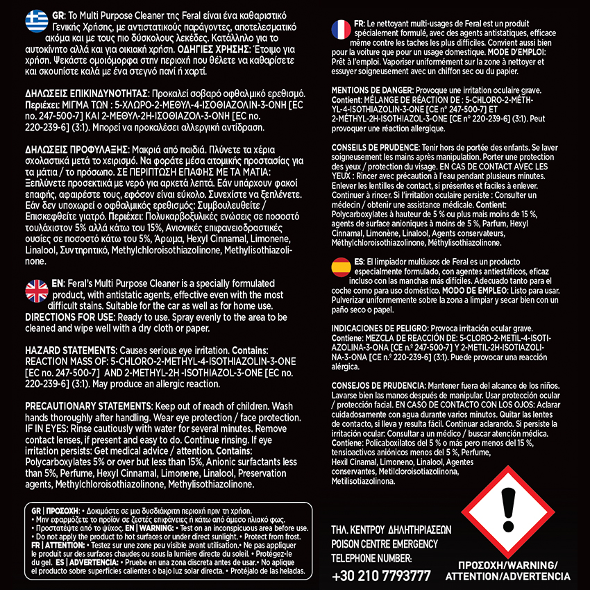 Feral Detailing Pro Multi Clean is a versatile all-purpose cleaner with a zesty Citrus Spark scent that provides deep, effective cleaning without leaving any residue. Effortlessly tackles dust, dirt, and stains on all surfaces, revealing their true radiance. Suitable for cars, homes, or work environments — leaving a clean and soothing aroma. Surface-friendly yet dirt-fighting, ideal for daily upkeep.