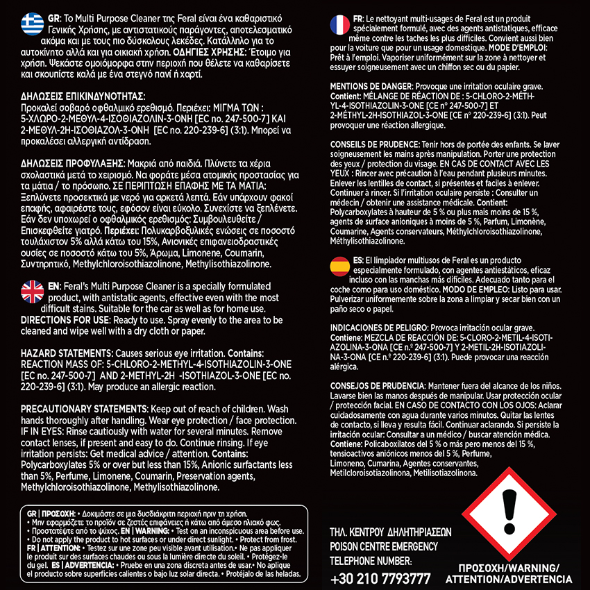 Feral Detailing Pro Multi Clean with an exotic Tropical Forest scent, is a versatile all-purpose cleaner, that provides deep, effective cleaning without leaving any residue. Effortlessly tackles dust, dirt, and stains on all surfaces, revealing their true radiance. Suitable for cars, homes, or work environments — leaving a clean and soothing aroma. Surface-friendly yet dirt-fighting, ideal for daily upkeep.