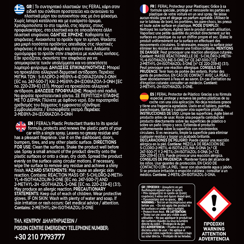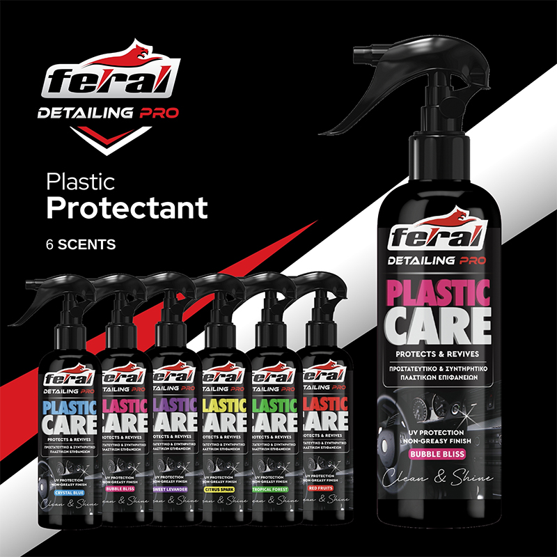 Feral Detailing Pro Plastic Care with an exotic Tropical Forest scent, is a professional-grade polish and maintenance formula designed to rejuvenate and protect all plastic surfaces. Enriched with UV protection, it effectively prevents wear, fading, and discoloration, leaving a smooth, glossy finish and a lasting sense of freshness. Ideal for dashboards and all interior or exterior plastic components that require care, restoration, and long-term protection.