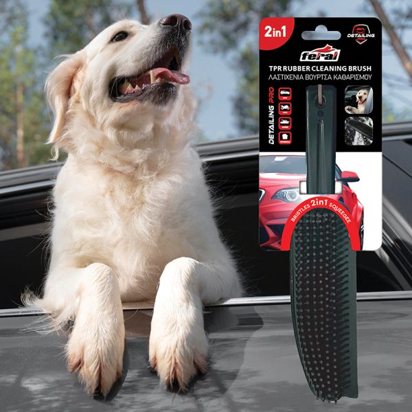 The Feral Detailing Pro Rubber Bristle Cleaning Brush 2in1 removes hair, lint and dust even from the most difficult spots, while the blade cleans glass and other smooth surfaces perfectly.